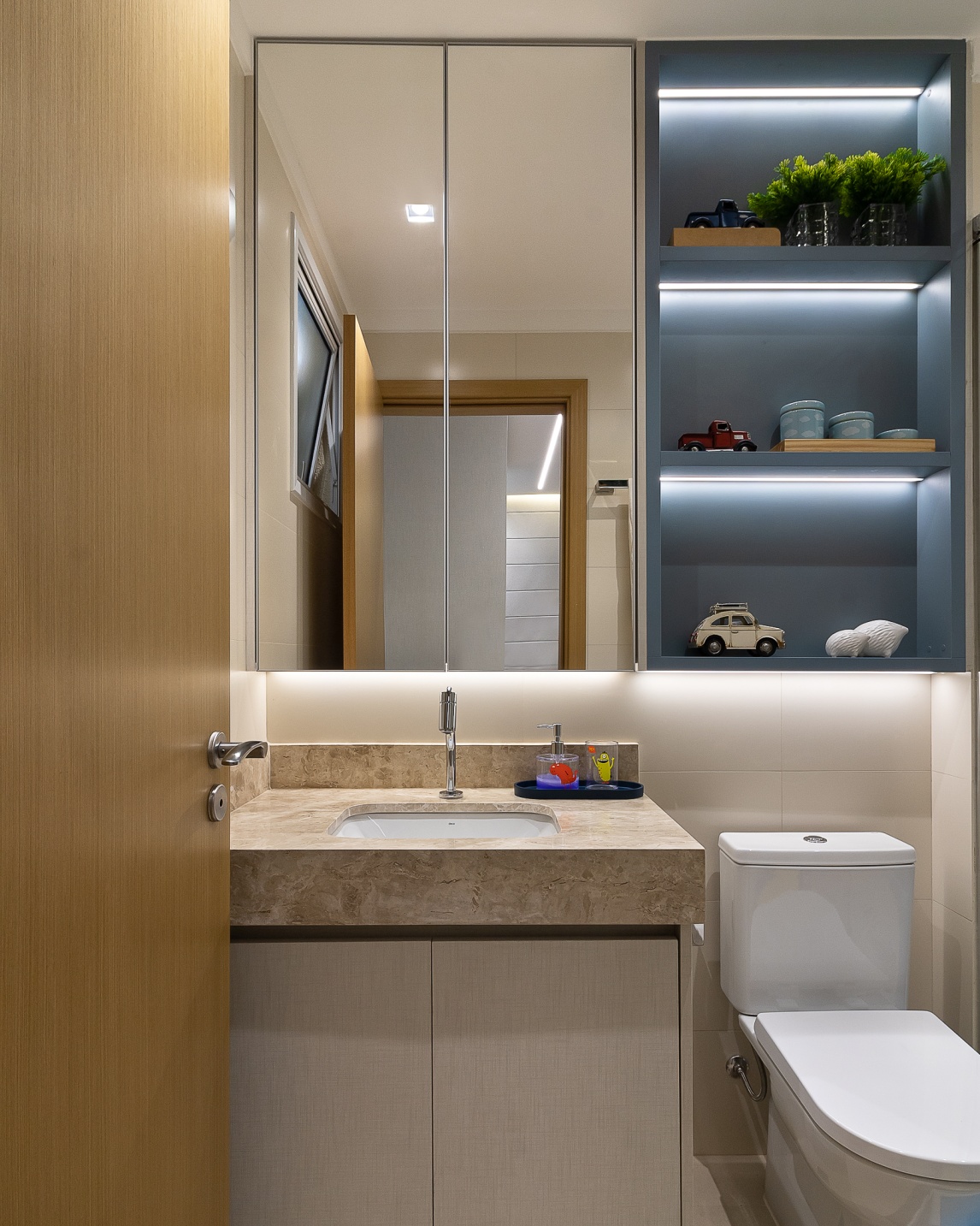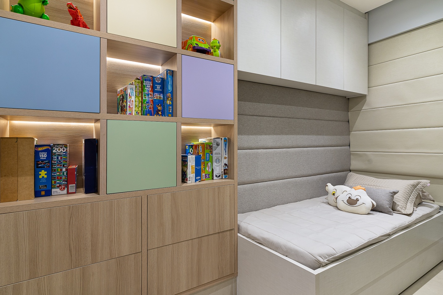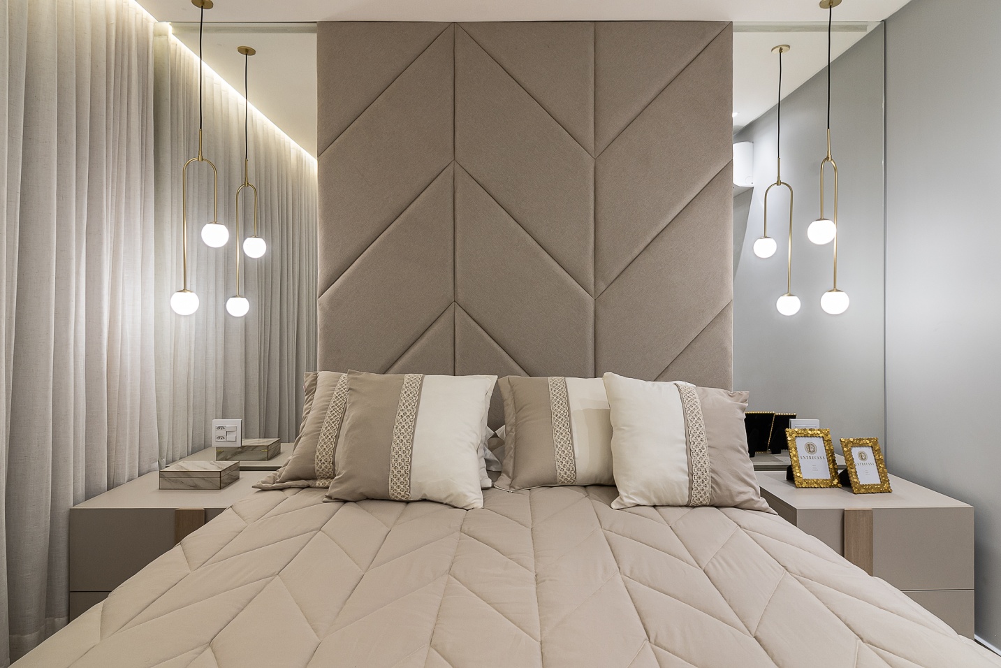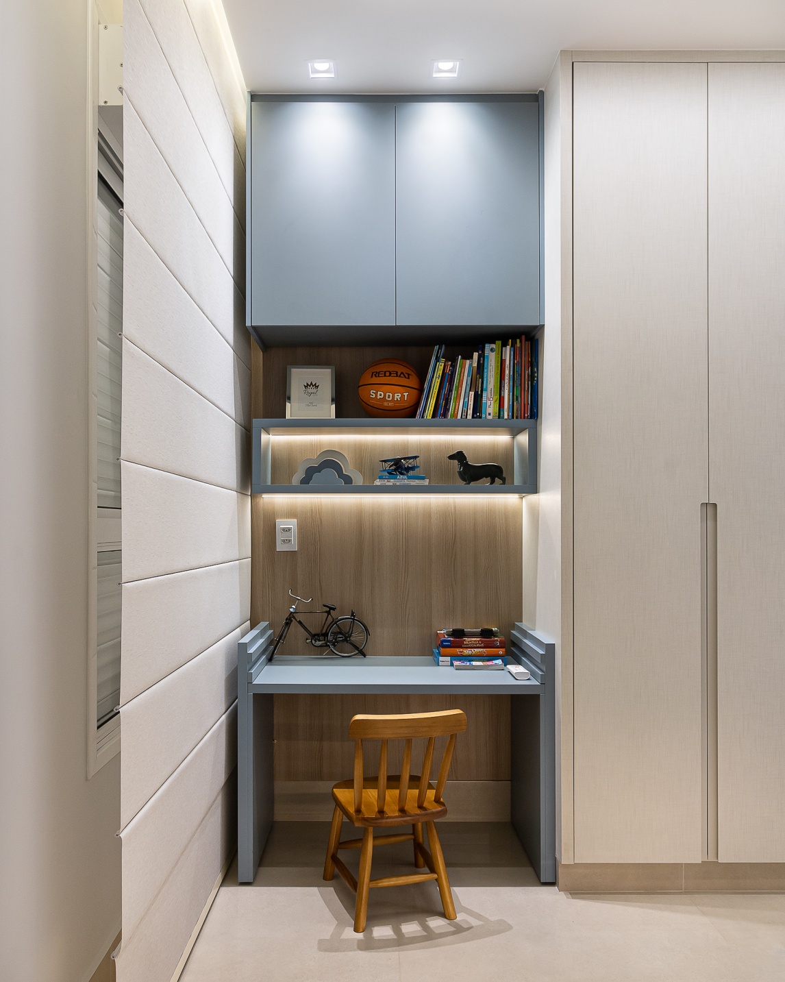 Criamos neste apartamento de 170m² um design único e funcional com uma marcenaria exclusiva em detalhes. Fizemos o projeto luminotécnico, ampliamos a bancada da cozinha e varanda gourmet. Selecionamos todo mobiliário e eletrodomésticos com os clientes. Um desenho contemporâneo, atemporal e clean foram premissas para o projeto. Utilizei tons de beges e amadeirado cujas cores foram trazidas por meio das obras de artes. No hall de entrada, painel tv e varanda goumet, a pedra onix que foi iluminada trouxe leveza e destaque para área social. Para a Suíte Casal um toque leve para a cabeceira e criados, mesa para maquiagem com espelho iluminado, closet integrado. Para o quarto do filho, trabalhei um armário com mesinha para estudos que acompanha a idade cuja a altura e ajustável e uma cama super aconchegante com iluminação indireta.