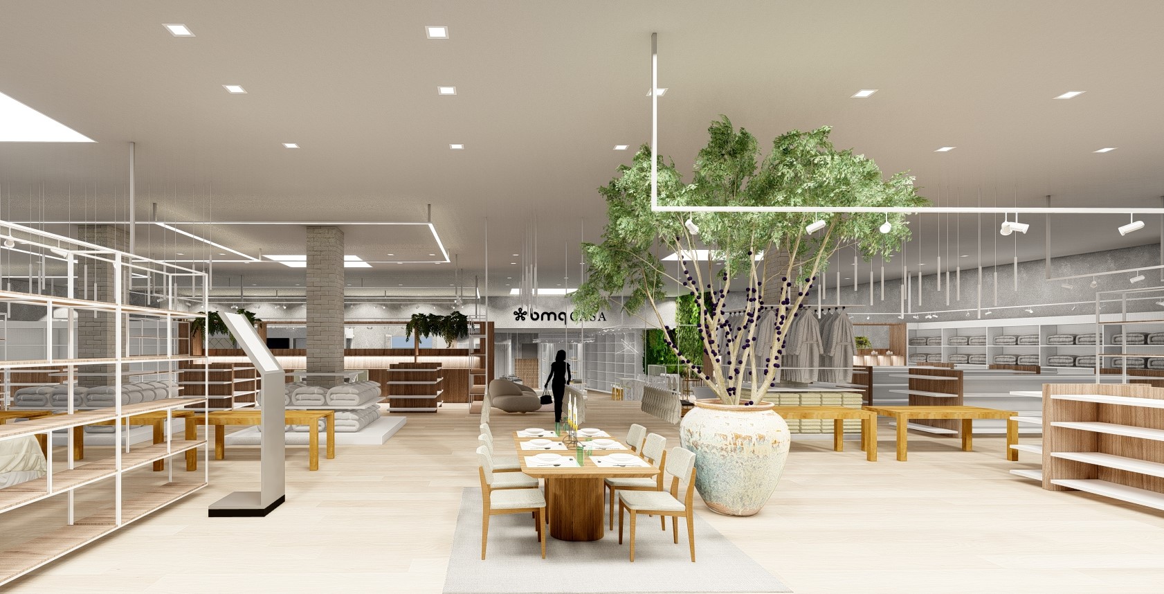 A loja Bmq casa trouxe novo conceito de marca e o projeto acompanhou toda essa transformação. Estantes vazadas, piso amadeirado, pintura em cimento queimado, marcenaria planejada para atender e organizar todos os produtos da loja. Uma fachada imponente que explora as cores da marca, onde utilizamos telha metálica pre pintada e pintura cimento queimado.